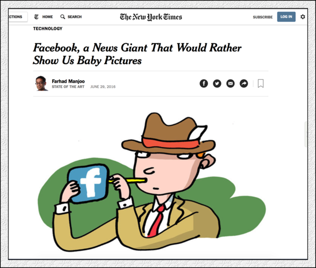 《紐約時報》記者邁克·艾薩克在相關報道的導語中寫道:幾年來,Facebook一直在引誘各種媒體機構,促使他們在拓展受眾時越來越依賴這個社交媒體平臺,F在,Facebook 向媒體們發出了一個新的信息:下調你們的預期。 《紐約時報》另一位聞名科技口記者、專欄作家法哈德·曼祖火氣好像更大一些。他當天在《紐約時報》刊發的另一篇長篇評論《作為新聞巨人,Facebook更愿意向我們曬娃》中揶揄Facebook:“在Facebook,向用戶提供有關這個世界的最新動向,老是要在后排排隊。寶寶的萌照先行!”他說:由于Facebook并不把自己視為新聞機構,看起來我們必需休止期待它象一個新聞機構那樣行事。我們要求傳統的新聞機構堅守正確、客觀、透明、公平這些原則。這些原則是否合用于Facebook?這可能是新媒體時代我們需要面臨的最大的困惑。 法哈德·曼祖說:Facebook有關算法調整以及算法調整的理由,讓媒體人感覺震動。