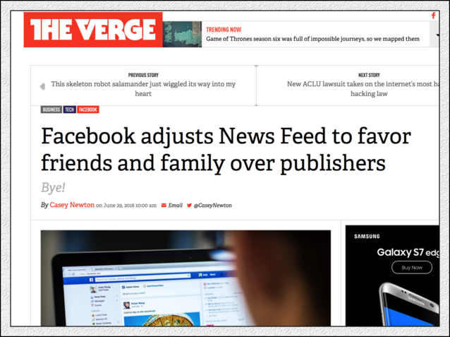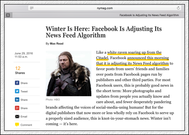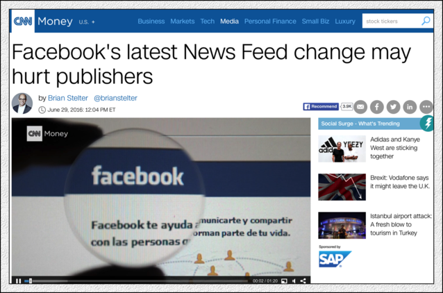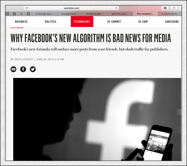 6月底,Facebook又公布調整算法了,這回調整,受傷的仍是媒體(Publishers)。幾乎所有的美國媒體這幾天討論的都是Facebook算法,以及自己身上正在流血的傷口?膳碌氖,媒體們在進行這次報道的時候,洋溢的是某種哀怨,而不是憤怒。他們憤怒,但表現的只是哀怨。與狼共舞,不時地被狼咬上一口,很正常的。 在2016年5月經歷了“Facebook新聞偏見門”、Facebook “蒂爾門”兩次沖擊之后,美國的媒體可能無法想象,這么快又會面對一次來自Facebook的新的震撼教育。