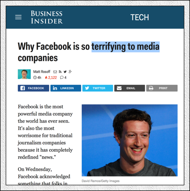 哈佛大學聞名的尼曼媒體實驗室也發了評論,評論的標題看起來實話實說,沒有出人意料之處,但恍惚處理的題圖把Facebook幾個字折騰得面目全非,顯然有些感情用事。