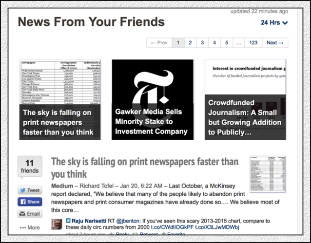 早上醒來,打開手機,一個美國標題黨制作的標題,在杰羅姆個性化定制的信息列表中,排在榜首。標題是這樣寫的:報業的天塌了,塌的速度比你想象得要快。ㄒ娤聢D)