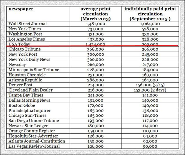 這張圖表顯示的是美國前25大報紙近幾年的發行量變化。2015年9月的數據來自各報向權勢巨子研究機構 Alliance for Audited Media 提交的講演,AAM 的宗旨是匡助媒體業“誠信交易”(Transact With Trust )。理查德·托福研究的方法論、數據采樣方面的科學性,都可以討論,甚至,他的詳細數據,也存在顯著的差錯。但是,在杰羅姆看來,這份圖表呈現的趨勢是清晰的。 在2013年,美國有兩份發行量在100萬以上的大報,華爾街日報和本日美國報,到了2015年,只有一份了,最后剩下的這一份按照下跌的趨勢與下跌的幅度,2016年極有可能破百。本日美國報2013年擁有142萬份的驕人發行數,但到了2015年,僅有98萬份了。理查德·托福在表中給出的數據是29.9萬份,98萬這一數字,是本日美國報在看到理查德·托福的研究后,自己出頭具名澄清的數字。 美國報紙通常會提供兩個發行數字,日常版與周末版。周末版高于日常版,理查德·托福采用的數字是周一至周五的日常版均勻發行數。 托福在他的文章里引述了2015年10月一份麥肯錫講演的結論:“我們相信很多人有可能會拋棄印刷版的報紙;同時,我們也相信現在報紙的那些核心讀者,會繼承訂閱報紙,從而為印刷版市場提供一個有效的基石。”不外,麥肯錫貌似持平的結論,在理查德·托?磥,卻是絕對悲觀與失望的。他問道:報紙的中長期危脅豈非僅僅來自報紙現在的大部門讀者將在未來的30年間逐漸過世? 他繼承問道,那些以為報業的下滑已經接近尾聲,高原已近在面前的觀點,決心信念來自何處? 托福提供的另一個細節,更讓人心生迷惑。他說,不久前波士頓環球報發生了因為更換送達服務商,而導致大量讀者無法收到報紙引發公憤的風波。在平息這場風波的過程中,波士頓環球報公然的數據顯示,實在,環球報的日常的發行數僅為11.5萬份,星斯天版為20.5萬份。這比托福在圖表中采信的數字14萬份,少了2.5萬份,接近20%。托福暴料,他在研究過程中,與不少業內人士有過交流,大家好像都有一種傾向,以為各報實際的發行數可能比圖表中呈現的,要更少;蛟S,這就是托福為什么把這篇文章的標題確定為“報業的天塌了,塌的速度比你想象得要快”的原因吧。 報紙的發行量,跟女性的春秋一樣,經常是個謎。比較名流的方法是不聞不問。但是,老是有人心狠手辣,努力尋找接近于真相的數字。他們,老是可以找到這樣悲傷的故事。 在數字時代,報紙的確老了。 中國報紙的發行數目呢?這同樣是一個秘密,大家都守舊得很好。你很難真實地知道某一家報紙的真實的發行量。事實上,報紙的實際發行數,在任何年代,都很難是絕對真實的。報業黃金時代那些大家認識的天文數字,畢竟離地有多遠,印刷廠廠長最清晰。不外,印數,并不是發行量,印數老是大于實際發行量。所以,拿印數來判定發行量,仍舊可能并不十分正確。而且,某一天的印數,根本不能說明題目。在季末、年末沖量,計多行業的很多人在干,你懂的。話說歸來,有必要把數字搞得那么精確嗎?趨勢擺在那里,數字上的小把戲,隨它去吧。 |