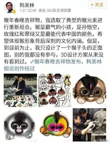 什么?這個猴子的3D制作過程巨匠竟然未介入過?不外看上面巨匠的原版畫,貌似差距是挺遠的。只是這3D的制作者將巨匠這畫作變得這么誤解,怪不得連巨匠也要進行澄清了。 而且看了看巨匠此前的畫作,這只吉利物猴子確實感覺有點來歷不明了。 來賞識一下巨匠的畫作:這才是藝術品好嗎。