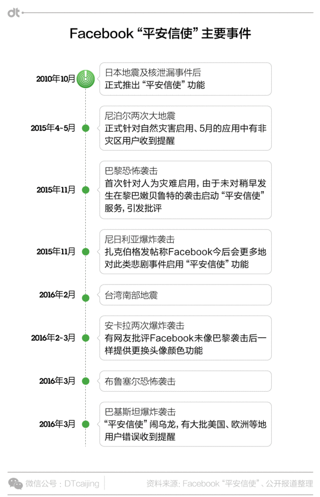 (圖片來源:Facebook平安信使頁面) “平安信使”已經推出了若干次盡管“平安信使”從推出到現在發生了一些烏龍,還由于這個功能涉及到定位追蹤和個人隱私的保護,也引發多次爭議。 不外這項服務的推出仍舊受到了良多歡迎,并且為實際救援提供了作用。 Facebook是第一個在大型災害事故上系統推出報平安服務的社交媒體。災害事件發生的時候,通信常常不暢,受影響地區的用戶會接收到大量的和災害相關的信息以及親朋摯友的關心,傳統的通信方式效率低下,而龐大的社交網絡則是提供這一公共服務的最佳平臺。同時,你也可以看到自己摯友的報平安狀態,以確定他們所處的情況。 這一功能最初是受日本地震及核泄漏事件啟發,起初只是針對天然劫難。而去年巴黎恐怖襲擊后,Facebook首次針對人為災害啟用平安信使,據Facebook自己公然的數據,410萬用戶在巴黎襲擊后24小時內匯報了平安,占了巴黎總人口的近三分之一。這些報平安的帖子經由大量傳播,終極看過報平安狀態的用戶數達到3.6億之多。