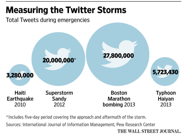 災害發生后,社交媒體都步履了起來實在不僅是Facebook的平安信使功能,跟著社交媒體不斷滲透滲出進我們糊口的方方面面,人們對社交媒體的依靠加強,各類社交媒體在災害應急上的角色越發重要。 美國政府在幾回颶風劫難后,對社交媒體越發正視。早在2010年,美國紅十字會的一份調查就顯示: 當911報警電話無法買通時,1/5的受訪者會通過社交媒體、電郵等方式聯系救援職員;假如網民得知其他人需要匡助,他們中的44%會在社交媒體平臺上哀求他人幫忙,35%會在官方Facebook頁面發帖求助,28%的人會私信官方推特。 相關比例如今很可能已增長的更高。跟著人們對社交媒體越發依靠,對這些網絡平臺的信任度在不斷晉升。當危機發生時,越來越多的人第一時間會在社交網絡發布動靜,并依賴社交網絡跟蹤事態進展。 美國聯邦應急治理機構稱,在2012年的颶風桑迪登陸期間,民眾發出的超過2千萬條推特,很多是在颶風最高峰時手機通信服務間斷的情況下發出的。而數據也顯示,在多次天然劫難中,推特用戶十分活躍。