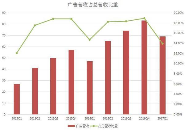 在騰訊發布新一季度財報之前,一眾剖析師都非?春。而在這之前,羅永浩曾直言“騰訊股市漲得比北京房價好”。那么騰訊新一季度的效果到底有剖析師所猜測的那么好嗎?別的收割很多玩家的《玩著榮耀》游戲又給騰訊奉獻了多少收入? 5月17日,騰訊發布了2017財年第一季度的效果陳述。該季度公司的營收為495.52億元(71.82億美元 ),同比增加55%;運營盈余192.72億元(27.93億美元),同比增加44%;公司權益持有人應占盈余為144.76億元(20.98億美元),同比增加58%。 作為早年建立的互聯網公司之一,騰訊的開展也閱歷了幾次大的戰略調整。從近來兩年的財報數據來看,公司的營收和凈利潤增速在持續上升且創了新高。但在2015Q2和2016Q4這兩個季度,營收曾遭受下滑。 騰訊開始以及時通訊東西發家,現在公司的事務現已掩蓋游戲、交際網絡、付出、云核算等。從營收構造來看,公司首要有增值效勞事務營收、網絡廣告事務營收和別的事務營收三大首要來歷。其間,增值效勞事務依然為公司奉獻了最多的收入。 游戲立異高,占總營收比重有所上升 作為騰訊最掙錢的事務大頭,該季度公司的增值效勞營收同比增加41%至351.08億元。 其間,來自網絡游戲的收入增加34%至228.11億元。游戲事務增加首要由智能手機游戲(如《王者榮耀》、《穿越前方:槍戰王者》及《龍之谷》)及PC客戶端游戲(如《英豪聯盟》、《FIFA Online 3》及《地下城與勇士》)所奉獻。盡管這次騰訊沒有發布《王者榮耀》的詳細效果,但上個季度公司曾泄漏游戲的日活潑用戶超越了5000萬。 詳細來看,來自PC客戶端的游戲收入為141億元,同比增加24%;來自智能手機游戲的收入為129億元,同比增加57%。 別的,來自交際網絡的收入增加56%至122.97億元。該項收入增加首要反映數字內容效勞(包含數字音樂、視頻及文學效勞)及虛擬道具銷售收入的增加。 近來幾年,經過自研IP游戲、代理游戲以及“買買買”的方法騰訊現已是全球最掙錢的游戲公司。正如剖析師所猜測的,騰訊的游戲收入又帶來了“驚喜”——創了前史新高。 不過,為了疏解收入構造單一帶來的潛在危險,騰訊一向都在擴大別的事務的營收,然后降低游戲在總收入中的占比。 從游戲和交際網絡營收增速的比照圖來看,近來兩年時間里前者都要慢于后者。從這兩項事務占公司總營收的比重來看,交際網絡一向保持在20%-30%之間。而游戲收入占比則在直線降低,在2016Q2降低至50%一下,在2016Q4占比僅為42.14%。但到了該季度,占比又有所上升。 網絡廣告營收增速趨于穩定,交際廣告同比增加67% 除了游戲外,網絡廣告算是騰訊要點規劃的事務之一了。 在這之前,騰訊曾調整了廣告事務的人事錄用,以進一步挖掘該事務的潛在價值并提高它的戰略地位。此前還有業內人士剖析認為,未來騰訊也許會開展成了一個以廣告事務為主的公司,比方廣告營收占比高達85%的Facebook。 該季度網絡廣告的營收同比增加47%至68.88億元。但比較2016Q3和2016Q4的74億元和83億元則有所降低。從曩昔兩年的數據來看,來自網絡廣告的增速現已離別之前動輒三位數的增加,而保持在40%-50%之間。 從廣告占總營收的比重來看,比較前幾季度也有所降低,為13.91%。這一數字要低于交際網絡在總營收中的占比。關于廣告事務的開展,騰訊現已在國內外進行積極的規劃,不知道終究是否能取得不錯的效果。 在該季度,騰訊對廣告事務的詳細區分進行了調整。不再是效果廣告和品牌展現廣告,而是按廣告特點和非廣告特點來區分: