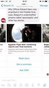 上月,Facebook開放了它們的動靜平臺,讓任何企業創建的聊天機器人與9億用戶直接交流。 CNN是四月首批推出機器人的內容供給商,并且可以供全球觀眾使用。CNN目前擁有2150萬FB粉絲,CNN國際頻道也擁有1160萬,他們的聊天機器人可以知足所有這些粉絲,負責照看機器人的團隊隸屬于CNN環球數字部分。 CNN聊天機器人的目標,是通過吸引全球各地新的觀眾、提供應他們更加個性化的新聞體驗,來擴大自身的國際影響力。 “動靜類應用對新聞來說是個成熟的平臺,由于這里可以一對一的交流,但是也可以作為媒體,大規模的廣播動靜。這就是其令人高興的原因所在。四大通信應用已經超越了四大社交平臺。”Wellen如是說。 CNN聊天機器人推出已近一月,他們都有哪些重要的發現呢? 哪里流血,哪里就能引發關注