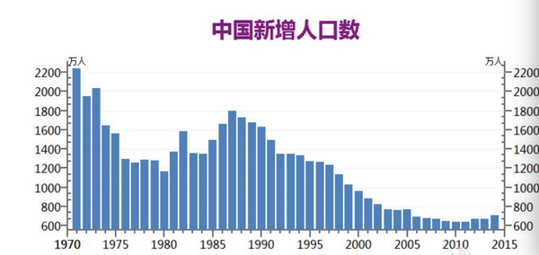 非常顯著,由正常的金字塔結構變為長方形行結構,可見養老負擔過重。 而阿里多數是以小件物品、日常消費為主,消費者以當下15——35歲區間,也就是80后人口居多,大家也認識了網購。 而我國社會,正處于“供應側改革階段”,由出產更多產品,知足人民日益上漲的物質需求;轉變為:出產高質量產品,知足人民群眾的精神需求。 買個產品,僅僅能用,這是不行的;85后年青一代,需要它酷;70后——85后,需要它健康。 這個需求是日益顯著的。 再看看看新增人口情況。