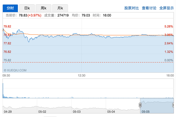 一、 翻了一下資料,財報顯示,阿里2016年Q1營收為241.84億元,同比增長39%;好于分析師預期的232億元。 平臺成交額突破3萬億,達到3.092萬億元人民幣,同比增長27%;好于分析師預期。 除此之外,平臺的云計算、互聯網基建業務,比較搶眼,收入大漲125%。 業績就是這樣的。 阿里的股價,開盤早起,漲幅達到5.12%,收盤時漲幅為3.97%。