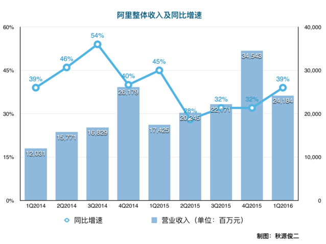 比較上市前之前的幾個quarter,同比增速比較緩慢。 (這也是阿里系上市就是頂的說法的原因。無論是先前在香港上市的阿里巴巴、仍是最近的螞蟻金服,無一例外都是這樣的,在企業發展最為刺眼而且本身體量較大的時候,選擇上市融資圈錢;臼前研」擅窨右活D) 但是相對于最近四個季度,發展速度最快。這是股價上漲的表面原因。 三、 阿里的估值,不能用成熟企業的那種眼光去看待,高速發展才是它此前估值的基礎,因此我們不能說看到“A股某公司業績20%的增長,就很驚人”這樣的邏輯去思索題目。 高新技術企業,假如沒有高速發展,大家對其價值判定就會大打折扣。 這和近期小米的發展遭遇是同樣的邏輯:小米手機全球銷量從第3降到第7,海內銷量從第1降到了第。 當海內市場發展速度降低了,目前小米是融資都融不到。400億美金的盤子,你敢隨便接嗎? 一句話來說:投資人可以接受的要么是發展速度緩慢但是產生大量現金流的cash cow;要么是產生較少現金流盈利狀況較差、但發展速度驚人的快速成長企業。 而且在發展速度和現金流方面,投資人更喜歡發展速度。 阿里屬于能夠產生大量現金流 的cash cow,同樣也是高速成長企業:2016Q1營收為242億人民幣,增長39%,估值在1800億美金左右。 四、 前面分析了為什么阿里的股價會漲,下面分析為什么只漲4%左右。 個人以為,阿里因為天貓、淘寶的本身屬性原因,不得不面對以下四個題目: √、因為人口春秋結構的變化,產生了消費者對于產品消費需求的變化。