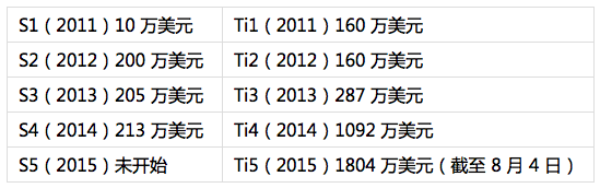 留意: 本文基本不討論游戲品質,更無意比較游戲優劣。 本文中的「比賽」和「游戲」并非統一概念,請留意區分。 本文可能從游戲本身以外的格式來看待游戲,包括但不限于產品及企業角度。 如標題所言,LOL指的是近些年最火熱的MOBA游戲英雄同盟,而1800萬天然指的是另一款MOBA游戲DotA2最近如火如荼的大賽Ti5。 在問為什么之前,先看是不是讓我們往返顧下雙方一年一度最具代表性的官方大賽分別有多大的獎金池。在這里,我們比較LOL的「英雄同盟全球總決賽」(League of Legends World Championships),其第n賽季簡稱Sn;以及DotA2的「Dota2國際邀請賽」(TheInternational,Dota2Championship),其第n屆簡稱Tin。 之所以選取這兩個賽事,有以下三個原因: 1.它們都是官方舉辦的具有代表性的世界級賽事; 2.它們都有比擬其他賽事較高的獎金額度; 3.它們都是大致會按期舉行的系列賽。 以上只是常識部門,無需展開敘述。而兩大系列賽的獎金比較如下: