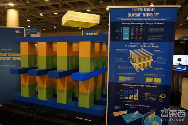 這是在IDF科再奇主題演講時最后收場的蜘蛛機器人群舞!在今年4月的深圳IDF上,其就展示了用基于Curie的手環控制一群蜘蛛機器人。如今的這群蜘蛛機器人是進級版,甚至帶來了一個“母后”——其后頭部是基于RealSense的實感攝像頭,身體內部是迷你電腦。 當然,這套黑科技并沒有什么卵用,主要展示實感的可用性,激發開發者創意?圃倨娣Q,自己不以為蜘蛛機器人會帶下世界末日。 再來看一些技術控的新玩意: 1. 3D XPoint內存技術
