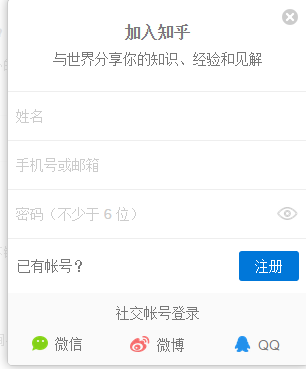 這類糊口和社區類的網站主要特點是匿名交流(出發布二手交易信息外),用戶一般也不會等閑更改自己的聯系信息。如下圖的58同城支持微信、手機和郵箱三種方式注冊;知乎直接填寫三項基本信息即可進入用戶中央,同時還支持微信微博QQ等第三方登錄;ò昃W則默認使用第三方登錄,讓用戶已最小的信息輸入本錢成功登錄網站使用網站的相關功能。
