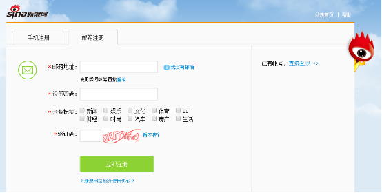 如下圖新浪網,注冊時需勾選自己的愛好標簽。