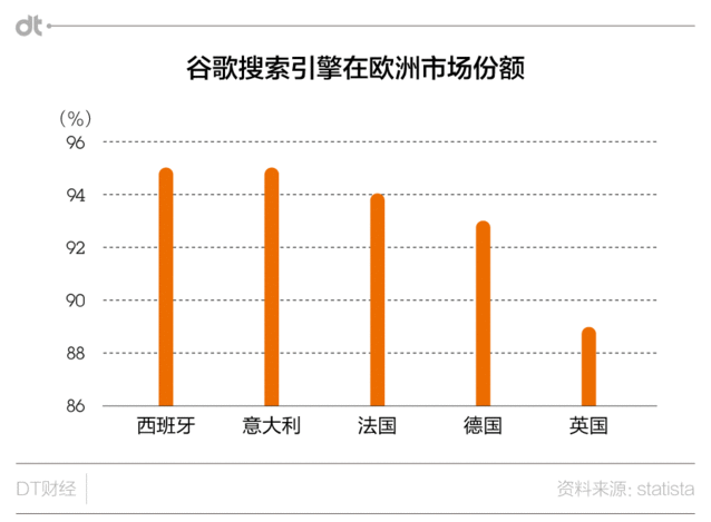 有美國媒體的評論就以為,谷歌是遭到了歐盟的政治報復。在訴訟的最后終于正式將矛頭對準安卓,絕對算得上是歐盟放出的一個大招。 安卓以及預裝谷歌搜索等應用,是谷歌現在在移動領域運營的基本模式,而歐盟市場對谷歌又十分重要,此次帶來的打擊注定不小,甚至有分析以為將改變谷歌的盈利模式。 還操作搜索結果?你居然是這樣的谷歌…… 實際上,在重點轉向安卓之前,歐盟一直抨擊的是谷歌的購物比價以及旅游等產品。歐盟指控谷歌濫用其搜索引擎的市場主導地位,將自己的產品排列在其他產品之前。(DT君也嚇了一跳:這個和百度被千夫所指的競價排名有關系嗎?真不知道,你居然是這樣的谷歌……) 先別急,我們來看一下在歐盟各主要國家,谷歌在搜索引擎市場的占比普遍都超過了九成: