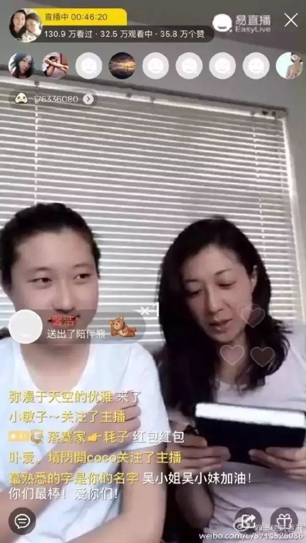 4月23日,吳綺莉帶著“小龍女”泛起在易直播。吳綺莉在微博中這樣寫:“與其被記者偷拍,躲隱藏藏,索性坦誠相見。”1個小時的直播,有超過25萬人同時收看,總觀看量超過274.3萬。直播過程中,女兒還幫媽媽公然征友。母女倆開心的笑顏和可愛的港普收成好評。
