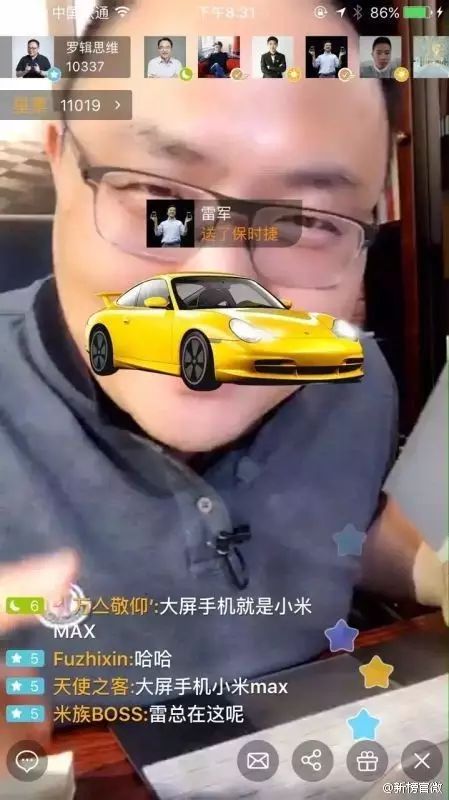 5月10日晚上八點,小米夏季新品發布會結束后,雷軍打開自家的小米直播App,開始一線“網紅”的業余直播。據悉,在兩個小時的直播中,雷軍各種賣萌要禮物,獲得70萬張星票,在線觀看人數超過20萬。此次直播,雷布斯可謂一箭雙雕。一方面,為小米MAX新機做了營銷;另一方面,又為自家的“小米直播”站臺。