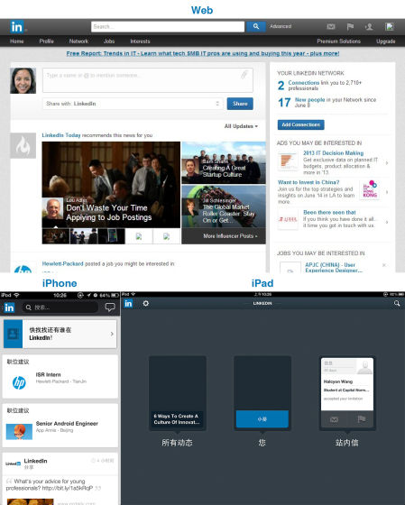 圖為 LinkedIn 的 Web、iPhone 和 iPad 版。 一、如何來規劃不同產品上的功能 在PC端有超大的屏幕,有鼠標和鍵盤靈活的交互形式,其功能往往比較復雜,用戶能通過鼠標指點的形式快速地完成各種任務。然而在PAD與手機端,屏幕能呈現的信息有限,交互形式也是精度相對較差的手勢形式,所有的這些都決定了在移動真個功能應該做減法。 對于新產品來說,移動優先或者是移動平等重要的產品規劃方式是及其重要的,獨立思索在移動端能呈現的功能和內容,讓設計師更清楚地看到產品的核心功能、內容,有利于設計師掌握產品的方向。甚至可以考慮將移動端優先于PC端,PC的功能在移動的功能基礎上去架構,它也不會脫離產品的核心價值。 PC 固有的特點在進行復雜功能操縱時會更有上風。那是不是復雜功能就直接轉移到 PC 上,而在手機上只展現簡樸功能呢?我覺得未必,要看產品的目標用戶和產品特點,有些產品用戶只更傾向于移動端使用,甚至還有些使用本產品的用戶都沒有 PC。因此,在考慮用戶特性的基礎上,優先規劃移動真個產品信息架構。假如有些功能覺得轉移到 PC 上衡量過沒有題目,那我覺得可以進行轉移,在移動端凸起最核心的功能給用戶,并保持界面簡潔。 對于老產品,像淘寶網這樣的產品,其 PC 端本身及其復雜。那在產品設計時,更多地思索在移動端用戶的使用情景和核心功能,先去知足最核心的功能,知足有手機特色和移動情景的功能。 二、設計上的差異在哪兒 當前的設計手法在各個平臺、各種形態上都有融合的趨勢,在Web真個設計也越來越客戶端化,很多Web App都讓人很難判定到底是HTML5做的仍是Native的。因此,在設計手法上的差異會越來越小。 然而,基于 PC、PAD、Phone的設備特性有較大的差異,PC 的指點操縱與PAD、Phone 的觸摸操縱有很大的不同,觸摸優先的設計原則對移動真個設計有較大的匡助。其次,用戶的設備的機能和網絡特征千差萬別,在設計時需要去思索各自用戶使用的環境。再次,多設備用戶,在使用產品時,如何進行設備間的切換,如何銜接不同設備的操縱而不被丟棄都是設計師需要考慮的題目。 對于WAP與Native的設計,主要關注瀏覽器的支持特性及Native上能施展的手機、各類傳感器的特性,這需要設計師拓寬思路去思索,好的設計能極大地晉升體驗。 三、設計上的策略有哪些 從PC端到移動真個Web設計時,響應式設計是提得最多的方法。且在很多公司都有良多實踐。在淘寶,梓佑(編者注:淘寶資深 UED 總監)之前也一直在推動響應式的設計,在一淘網、淘寶搜索等很多產品上都有實踐,總得來說對用戶體驗起到了積極的作用。 然而我們看到的響應式做得好的網站往往是結構相對簡樸的博客類、新聞類網站,這些頁面結構簡樸,響應規則輕易定制,前端實現也不復雜。而對于復雜的網頁的響應式設計,則都會碰到不少挑戰,淘寶資深設計師,樂乘,在做玩客項目時,總結了一套設計方案,值得參考。但是總的來說,復雜頁面是不是要使用響應式還值得探討。 對于PC與移動客戶端(App)的設計有何差異?成功移動客戶端產品往往是基于用戶任務與使用情景進行設計,施展了手機的特性,使原本PC的功能得到更好地彌補與晉升。如大眾點評中的LBS使用戶能快速地發現四周的店鋪;微博能快速地上傳即時拍攝的照片,能隨時隨地的查詢等。 那WAP與客戶真個上有什么側重呢?從使用情景上來講,這兩者是一致的。主要的側重有兩點,其一是兩者的流量原來往往不一致,根據流量來源來區分用戶的特征,基于用戶特征的不同來使兩者在產品上的不同。其二是WAP上一些限制和上風,WAP上有很多功能還無法實現,另外WAP有快速迭代的上風,也可以進行一些項目的試錯等。當然,當前WAP與客戶端也在融合,這也是一個方向,跟著HTML5等技術的成熟,兩者的融合是早晚的事情。 最后,移動互聯網的時代已經來臨,移動用戶的體量也會越來越超越PC,在進行產品設計時,思索移動平臺是必定的,如何能進行更好地全平臺設計,還有待業內人士更多地探討。記得幾年前,我非常信仰移動真個產品應該是PC的增補,現在看來完全不靠譜。像微信這樣的產品,PC真個設計純粹是移動真個增補,更多產品則根本沒有PC真個產品。因此,如何能進行全平臺的設計,也需要根據各自的產品特征、用戶特征、情景特征來決定,最大地施展產品的核心價值給目標用戶,這就成功了! |