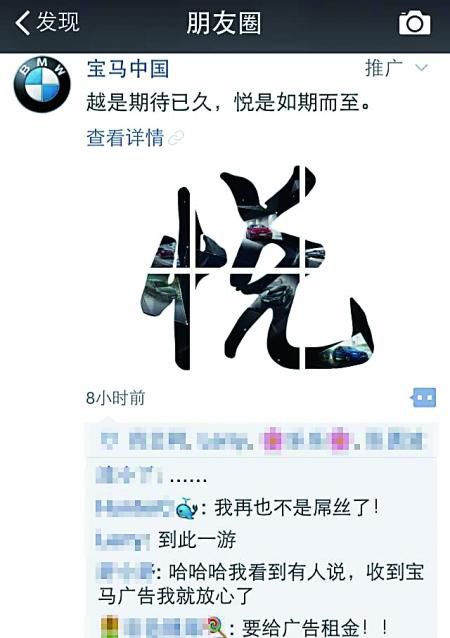 實在,想想這招微信也用過,只不外推送的廣告,常常被屏蔽,而且不同用戶接受的不同,好像也在暴露階層差異引發網友狂噴:憑什么人家推送寶馬中國給我推送可口可樂?這簡直是赤果果的歧視!不能忍!小樣兒,你過來,我保證不打死你!