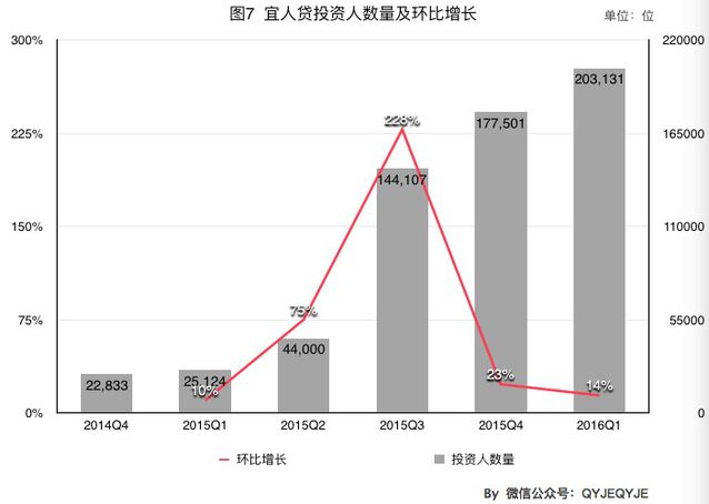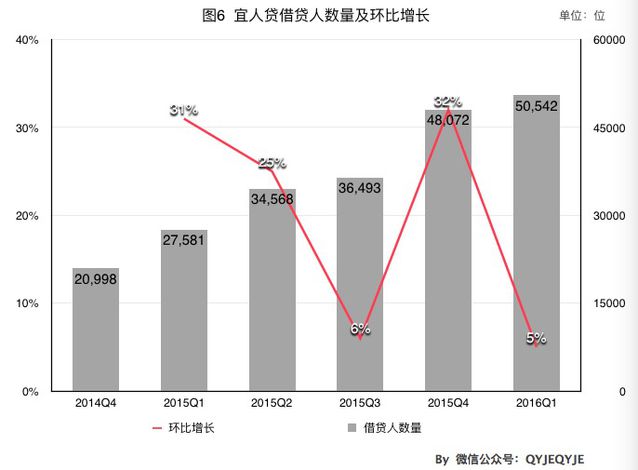單借款人數變化情況,與看點一整體波動情況以及正?袋c二波動情況相似。增速都是在2015Q3季度泛起相對低谷;跟著宜人貸上市,泛起短暫的反彈;而后跟著整體宏觀環境,達到歷史最低點。 當然,整體絕對值情況,仍舊是繼承不亂發展。