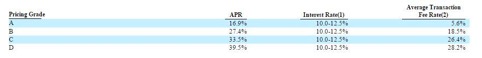 Interest Rate 是利率,Average Transaction Fee Rate 是收取的貸款中介服務費,年化利率APR,D類客戶高達39.5%。(民間借貸超過36%不受司法保護) 我們再看看看客戶分布情況: