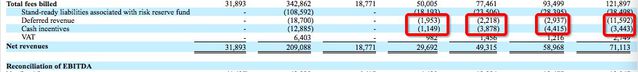 (注:總凈營收,是指總收費額扣除風險預備金、遞延收入以及高管的現金獎勵后的收入情況) 正常情況下,根據會計信息的配比原則(matching principle)和財務信息內在一致性邏輯原則,總凈營收應該與平臺貸款總額(理解成電商GMV)和總收費額(理解成毛收入)應該泛起同樣的拐點。 (注:配比原則通俗來說,就是有多大的場面,就應該有相匹配的收入和用度;內在一致性原則,就是說相關財務數據,內在存在一定意義上的比例關系) 然而我們觀察到波動里泛起了一些失常情況,原本Q2應該凈營收繼承下降的,卻意外的上升。2016Q1季度凈營收,應該達到最低點,然而卻與2015Q4季度持平。其他情況,基本與看點一描述的類似。