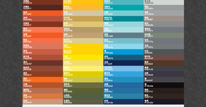 要體現顏色里的濃郁、富足感,可采用一個有力的顏色和它暗下來的補色組合。例如,深白蘭地酒赤色就是在赤色中加了黑色,就像產自法國葡萄園里陳年純美的葡萄酒,標志財富。白蘭地酒赤色和深森林綠如果和金色一起使用可體現富裕。
