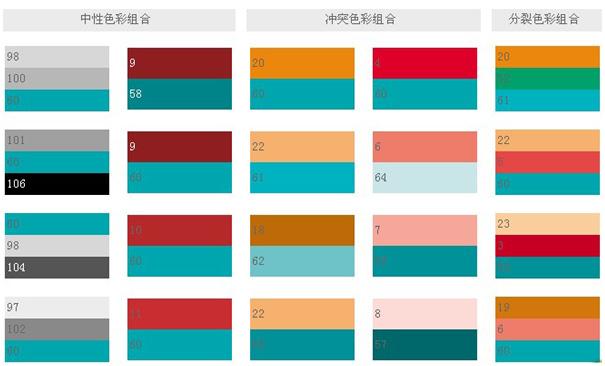 傳統的顏色組合常常是從那些具有歷史意義的顏色那里仿來的。藍、暗紅、褐和綠等保守的顏色加上了灰色或是加深了顏色,都可以表達傳統的主題。