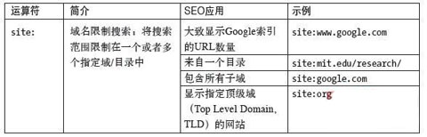 2.5.1 Google高檔查找運算符(1) Google支持許多高檔查找運算符,可以用它們來協助診斷SEO問題。表2-1概述這些查詢,用于SEO的辦法以及運用示例。