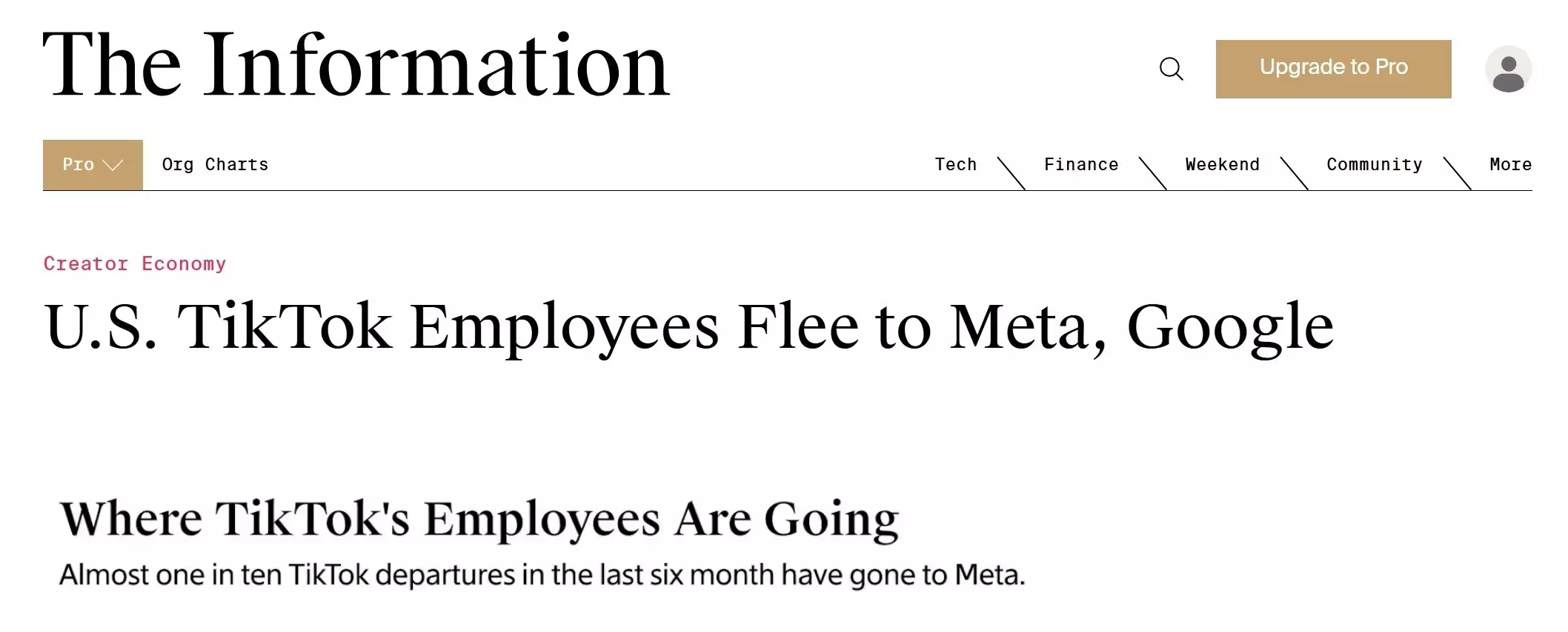 據南方都市報等媒體報道,受美國對 TikTok 禁令的影響,2024 年下半年起,TikTok 美國員工離職率顯著高于其他公司,幾乎是 Meta、蘋果、亞馬遜、