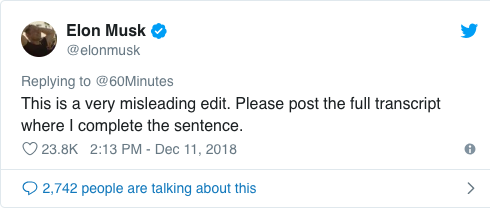 北京時間12月11日下午音訊,特斯拉的首席執行官埃隆·馬斯克(Elon Musk)在承受哥倫比亞廣播公司(CBS)《60分鐘》節目采訪時,表明自己無意于再次擔任這家汽車制造商的主席一職。
