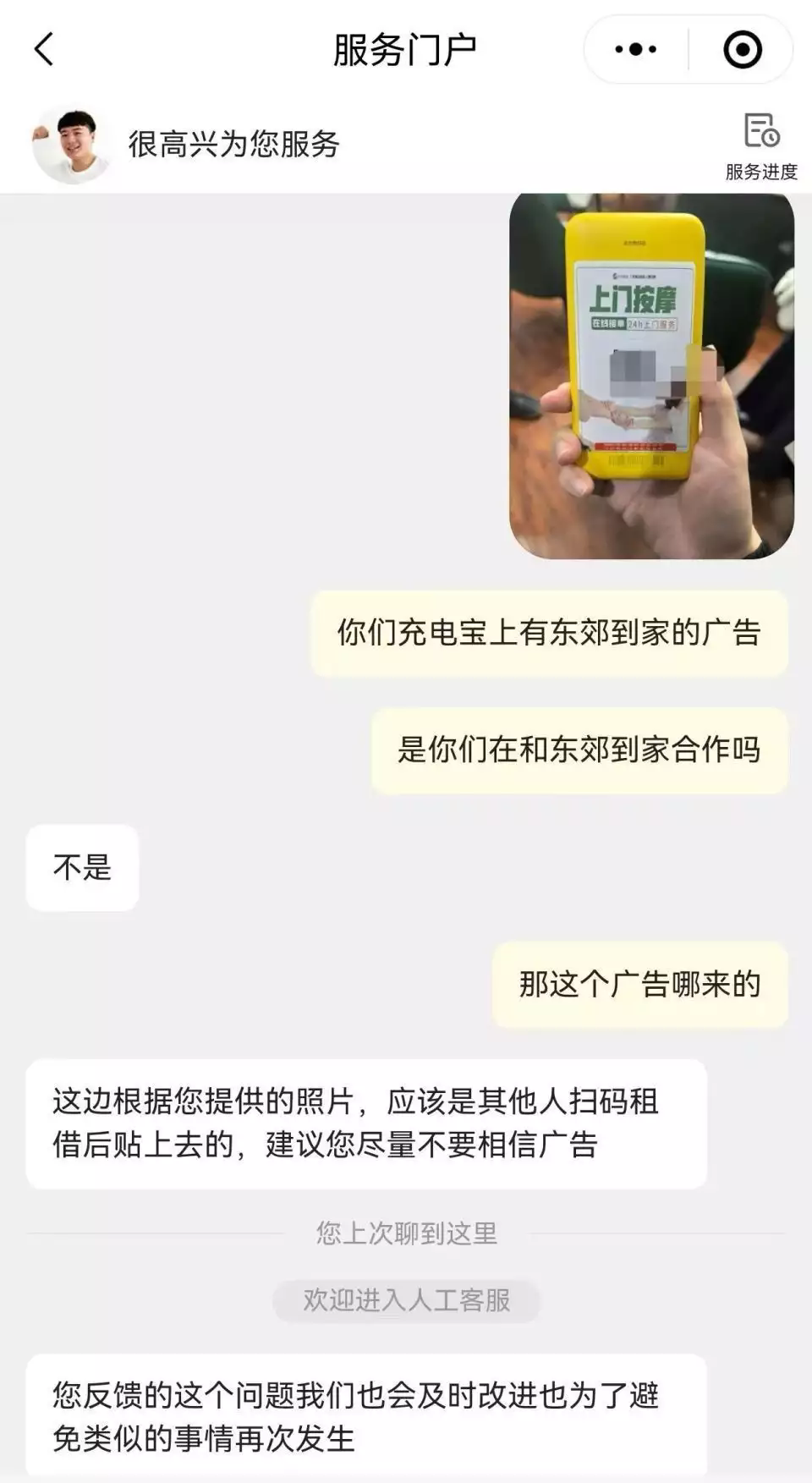 2024 年 12 月 22 日,武漢市民李曼在楚河漢街某餐飲店租用美團共享充電寶時,發現充電寶上粘貼有 “東郊到家上門按摩” 的廣告. 以下是關于該事件的詳細介紹: