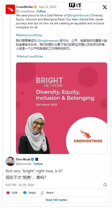 馬斯克借微軟Windows藍屏事件進犯CrowdStrike的“多元化”