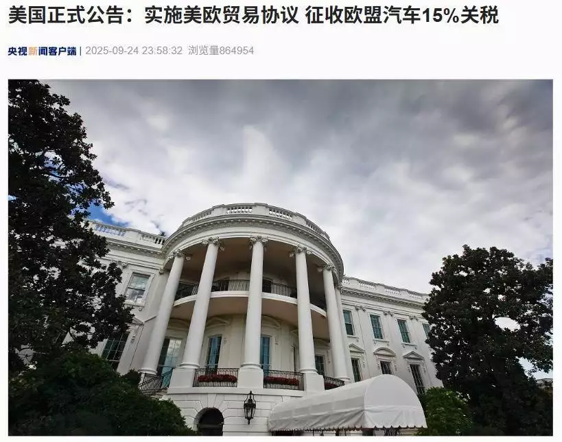 美國商務部與貿易代表辦公室于當地時間9月24日發布聯合公告,正式確認對歐盟進口汽車及汽車產品征收15%的關稅,此決定將追溯至2025年8月1日起生效。