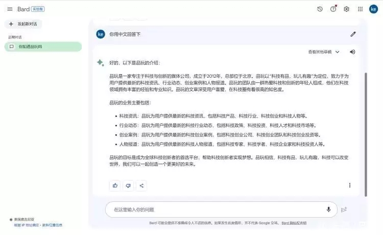 7月13日訊,據 Bard AI 頁面顯現,Bard 現已支撐中文環境,允許用戶運用中文進行溝通。 據谷歌 Bard 的更新日至顯現,