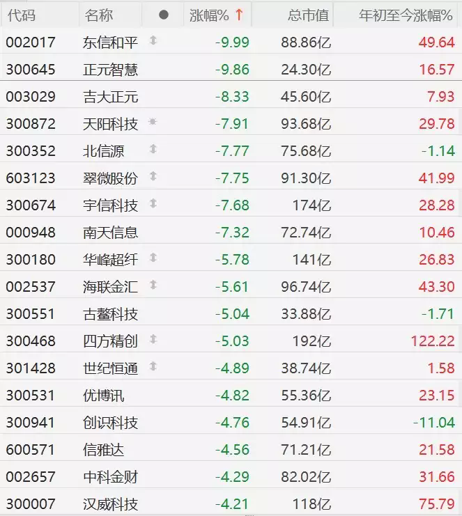 此前持續走強的數字貨幣概念股今日集體回調,其中,東信和平跌停,正元智慧得近10%,吉大正元跌超8%,天陽科技、北信源、翠微股份、宇信科技、