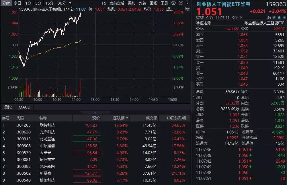 近期人工智能板塊,特別是算力方向的市場表現非常強勁。28日早盤,光模塊等算力方向持續強勢,高算力含量的創業板人工智能持續大漲超2%!