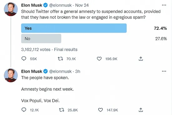 馬斯克正在依照自己的毅力改造Twitter。 近期,馬斯特在Twitter發起是否康復美國前總統特朗普Twitter賬號的民意查詢,