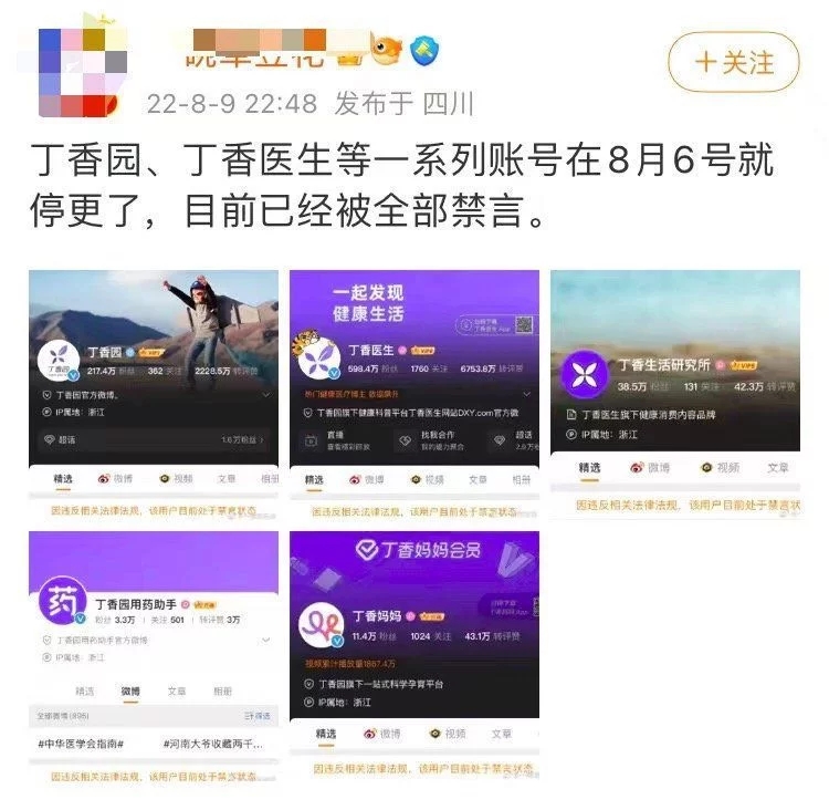 8月10日音訊,針對丁香園旗下系列微博賬號被禁言一事,據齊魯壹點報導,丁香園工作人員回應稱,公司部分社交媒體賬號因平臺要求,