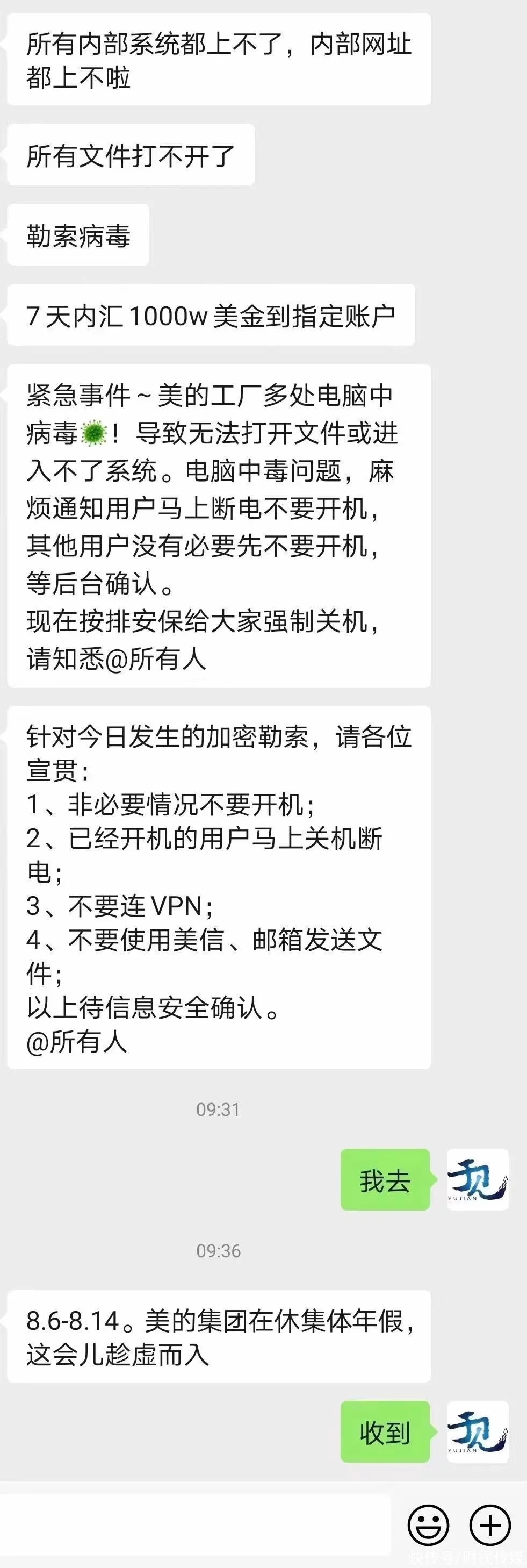 8月11日晚間,微博@美的集團針對“公司內網遭受電腦病毒侵略,被勒索1000萬美金”風聞發布說明。美的表明,8月11日,美的集團遭受新型網絡病毒進犯,