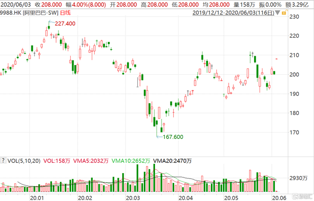 618購物節閃亮開局,阿里巴巴今早跳空高開4%報208港元,盤前成交3.29億港元,最新總市值44641億港元。隔夜美股阿里巴巴收漲3.76%報214.33美元,